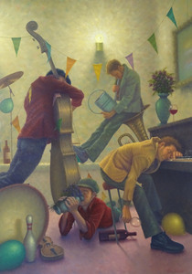Muziek en muziekinstrumenten vormen een belangrijke inspiratiebron voor velen, maar voor Theo in het bijzonder. Zijn brede smaak laat hij graag terugkomen in zijn schilderijen.